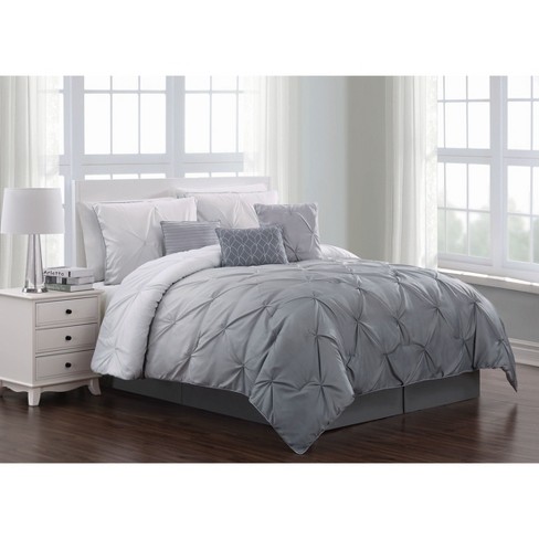It includes two shams and a comforter made from microfiber and features a pleated pintuck design. 90'' x 92'' two shams: As a fair trade certified™ product, each piece directly improves the lif… 80'' x 60'' throw pillow: 12'' x 16'' throw pillow: 20'' x 26'' (each) bedskirt: At the center of each pintuck is a medallion of tufted beads to create a floral design that adds visual dimension. Refresh your bedroom in elegant, traditional style with this comforter set. Secure a signature look by showcasing this luxury comforter set from madison park. Lekesky queen comforter set, pinch pleat comforter for queen bed(90x90 inches), 3 pieces down alternative bedding comforter sets, 1 pintuck comforter and 2 pillow shams, grey 4.2 out of 5 stars 52